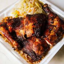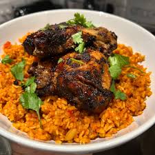 Jerk chicken and Jollof rice